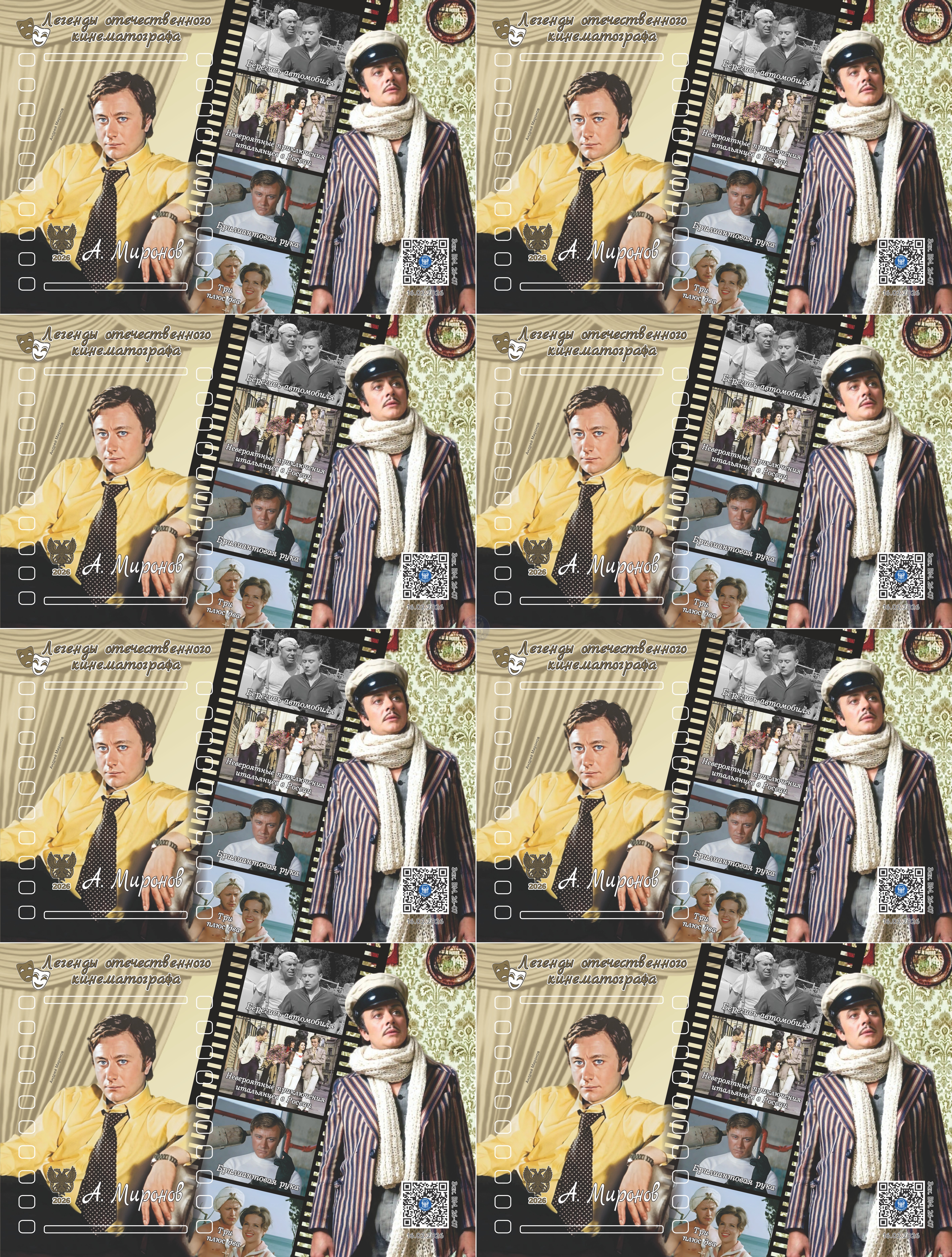 Лист виньеток «Легенды отечественного кинематографа. А.А.Миронов»